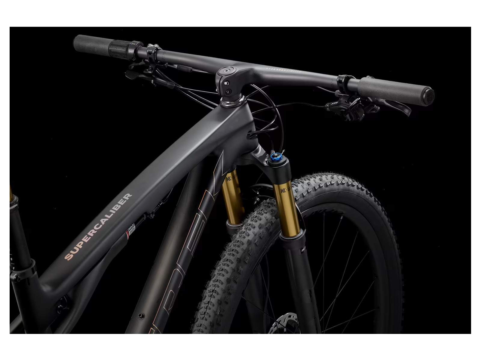 The Supercaliber SLR 9.9 XTR is an ultra-light carbon XC mountain bike equipped with the top components for race day. Its SLR Mountain Carbon frame is as light as it is meticulous, with a high modulus lay-up that gives you all the stiffness you crave and none of the weight. XC courses get rowdier every year, so it comes equipped with a 110 mm fork and 80 mm of IsoStrut rear suspension to smooth your roll without kicking pedalling efficiency to the wind. It's all topped off with carbon wheels, a carbon cockpit and Shimano XTR drivetrain.