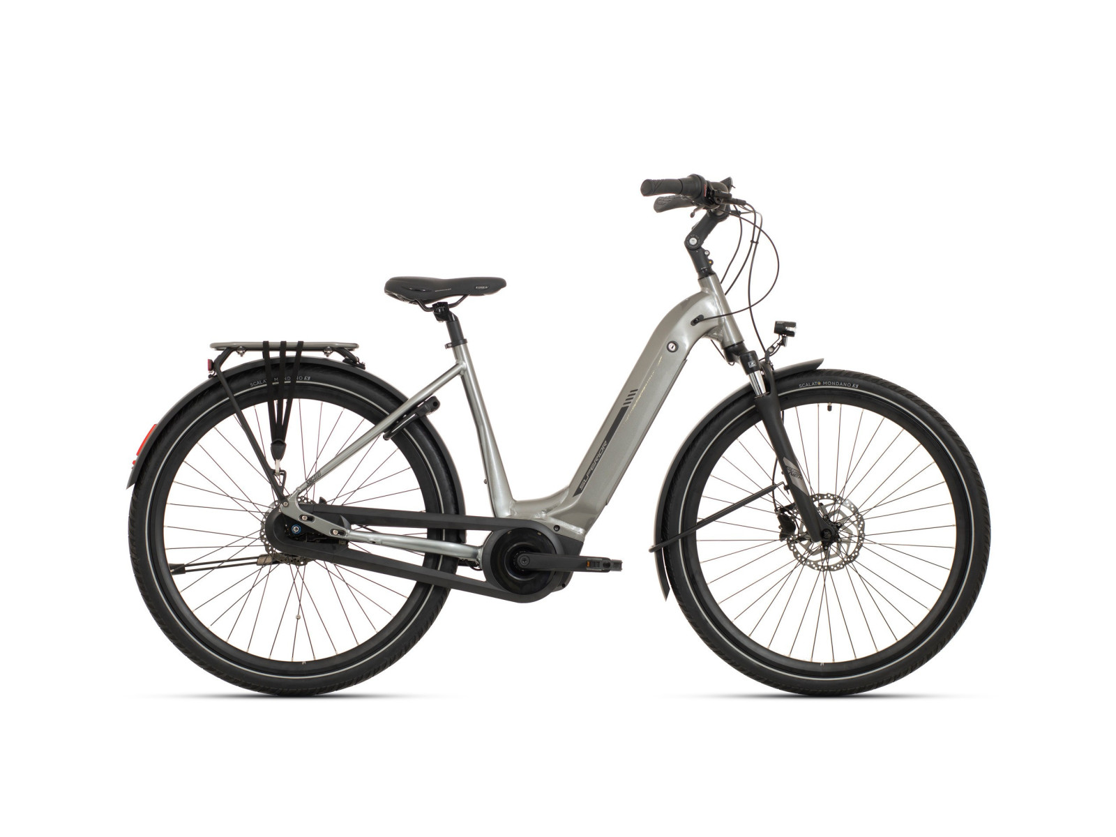 Pilsētas e-velosipēds ar zemu rāmi, jaudīgu Bosch Active Line Plus pilsētas elektromotoru ar 250 W un 50 Nm, pilnībā integrētu akumulatoru ar darbības rādiusu līdz 140 km* un jaudīgiem Shimano hidrauliskajiem disku bremzēm, kas nodrošina drošu apstāšanos jebkuros laika apstākļos. Pateicoties regulējamajam stūres kātiņam, varat pielāgot pareizo pozīciju uz velosipēda, bet plašais aprīkojums nodrošina komfortu pilsētā un velosipēdu ceļos: dubļusargi, lukturi, statīvs un bagāžnieks.
