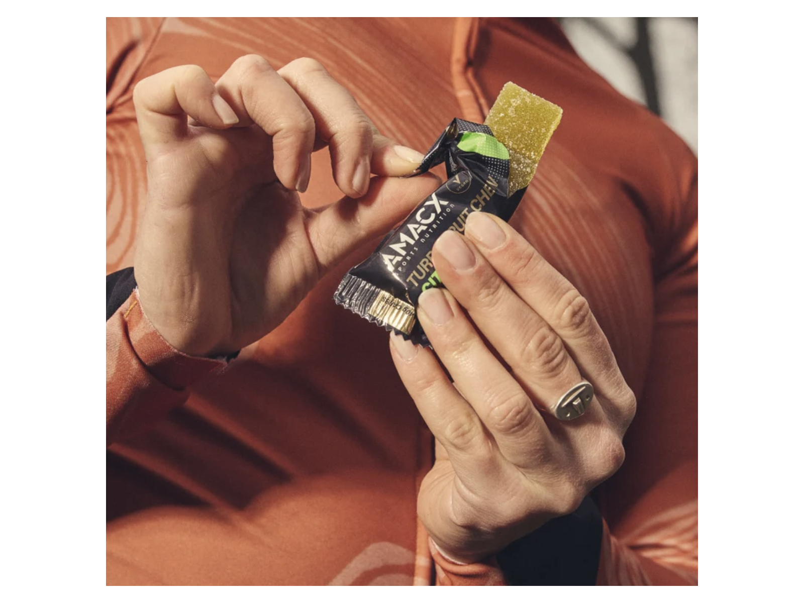 Amacx Turbo Chew Bar ir košļājams enerģijas batoniņš ar augstu ogļhidrātu saturu, pateicoties pareizajai glikozes un fruktozes attiecībai (1:0,8). Turklāt Turbo Chew Bar ir ar zemu tauku, olbaltumvielu un šķiedrvielu saturu, kas ir īpaši svarīgi, ja intensīvas un ilgstošas slodzes laikā nepieciešams uzņemt lielu ogļhidrātu daudzumu